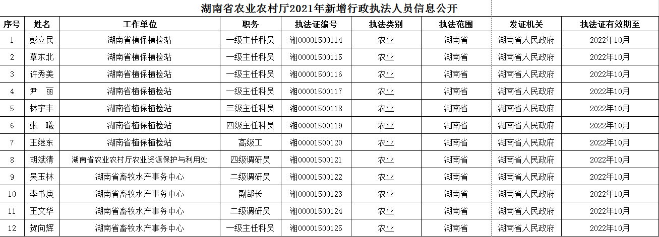 湖南省农业农村厅2021年新增行政执法人员信息公开 -k8凯发天生赢家一触即发人生